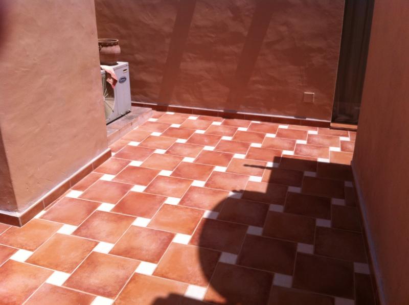 urb.la cartuja,benahavis | terrace aprox 60sqm and 25 sqm with tiles 30x30 with litle marblle tile 10x10