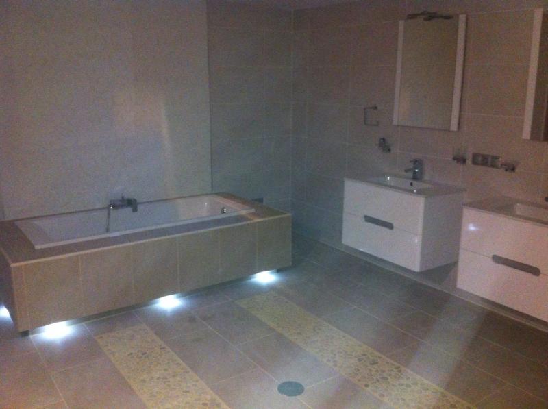 Description we did new screed over old tiles and layed down new tiles 30x30 with little tile10x10 in midlle of tiles finished with same colour of grout and borders around walls